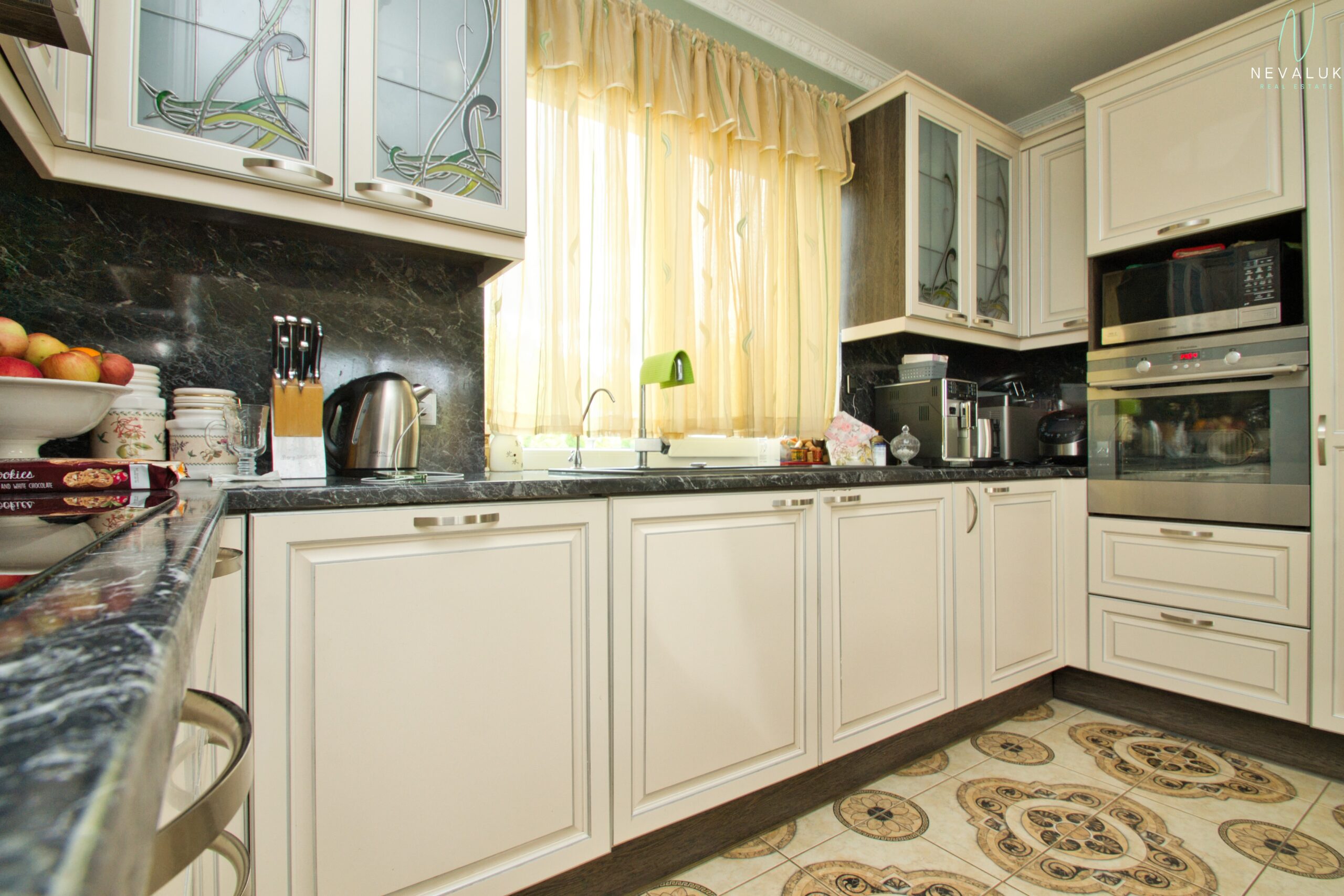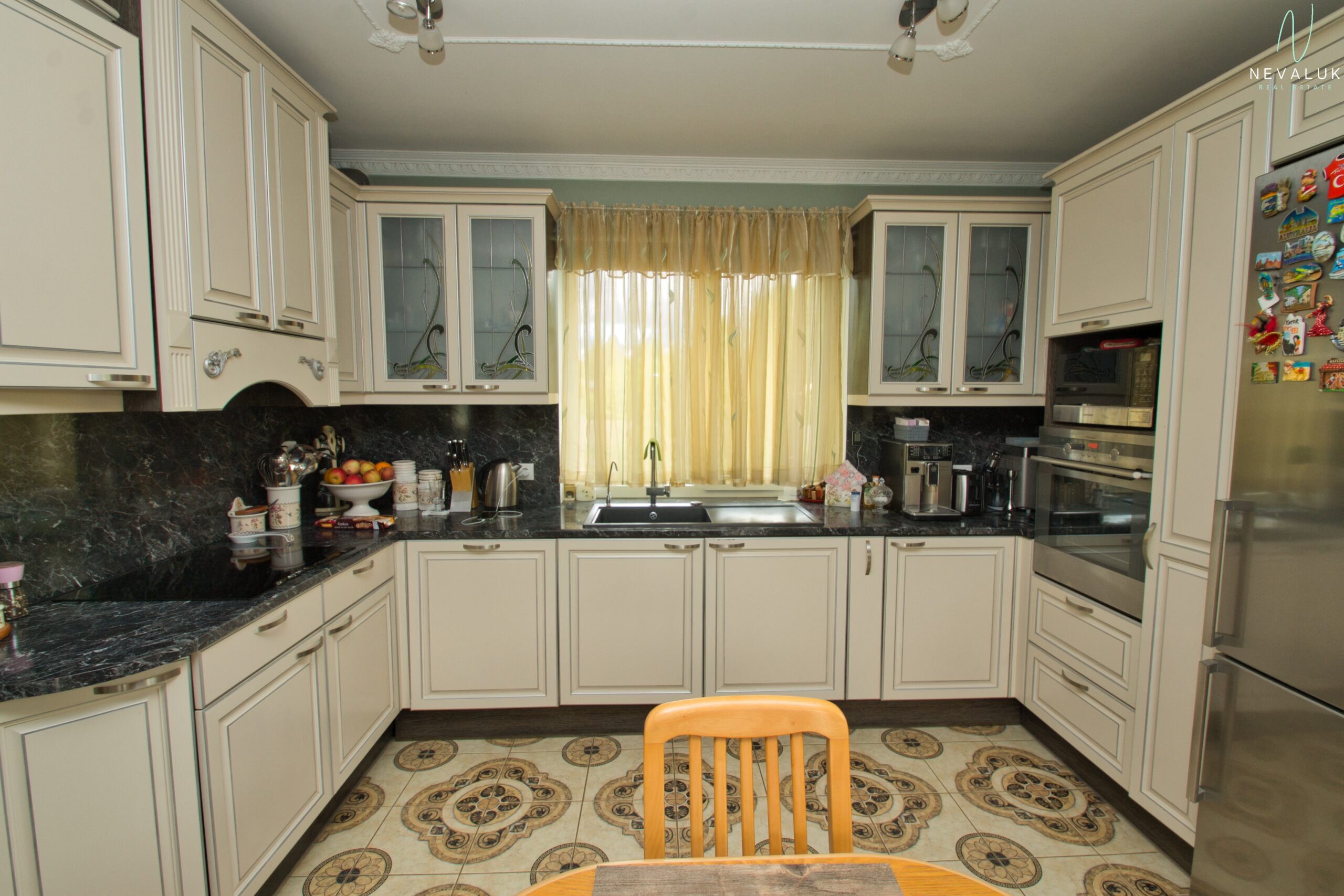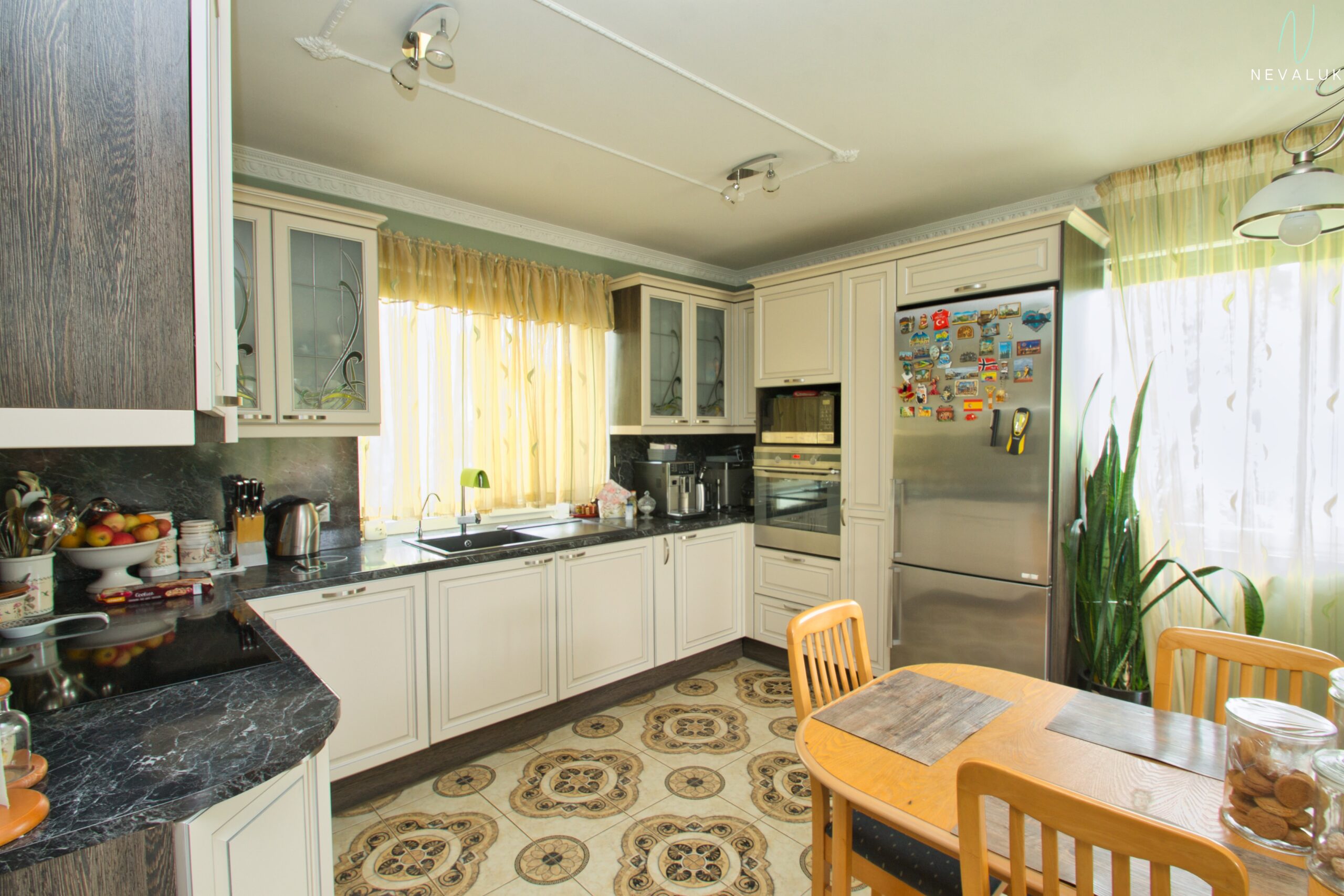 Paremale poole jääb suur avatud köök, mida eraldavad elutoaga kaks suurt ukseava. Köögis mis on heledates toonides kontrastiks must marmor tööpind, kus on kõik vajalik olemas, pliit, ahi, nõudepesumasin, külmkapp. Köögis on väljapääs terrassile, mis viib tahahoovi.