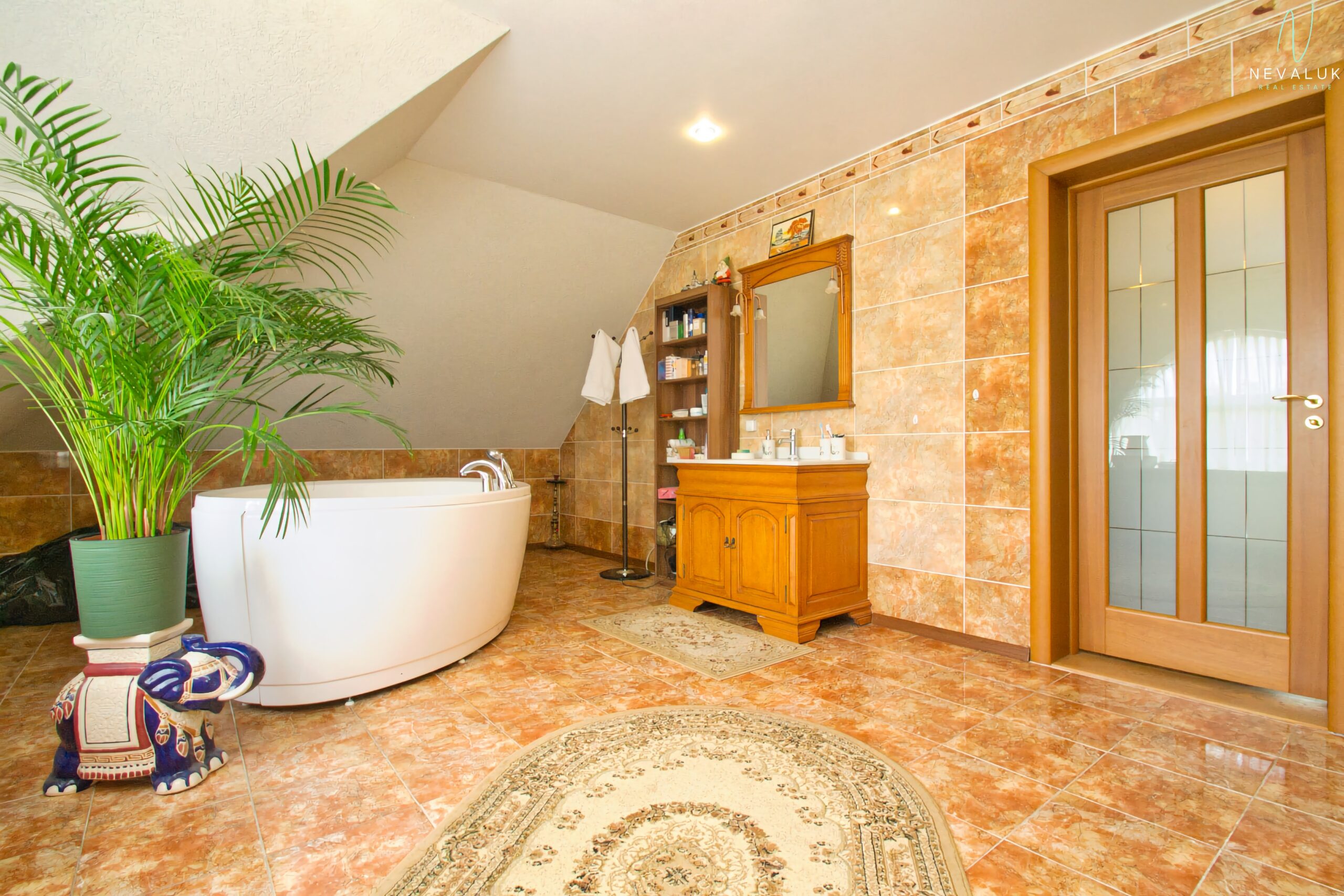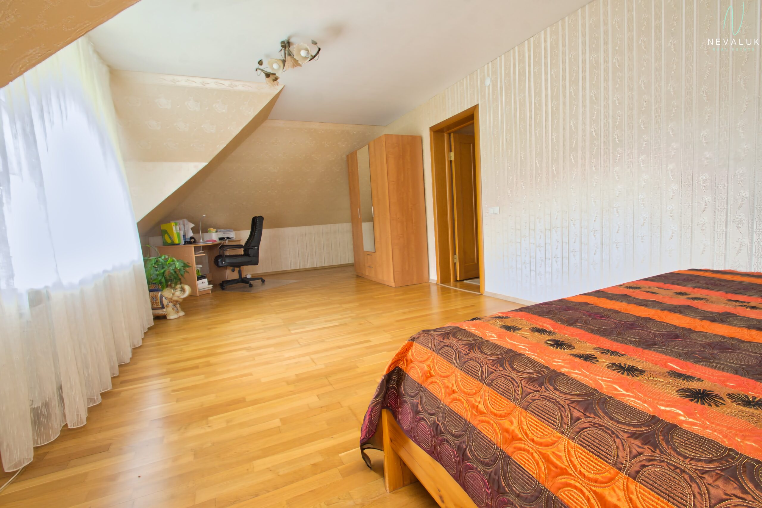Teisele korrusele viiv puidust trepp on omaette kunsti šedööver fototapeediga. Teisel korrusel 3 kuningliku mõõtu magamistuba. Ja kirss tordil toa suurune 200 liitrise vanniga vannituba, peegelkapi, kraanikausi, wc poti ja bideega. Samuti ruum triikimilauale.