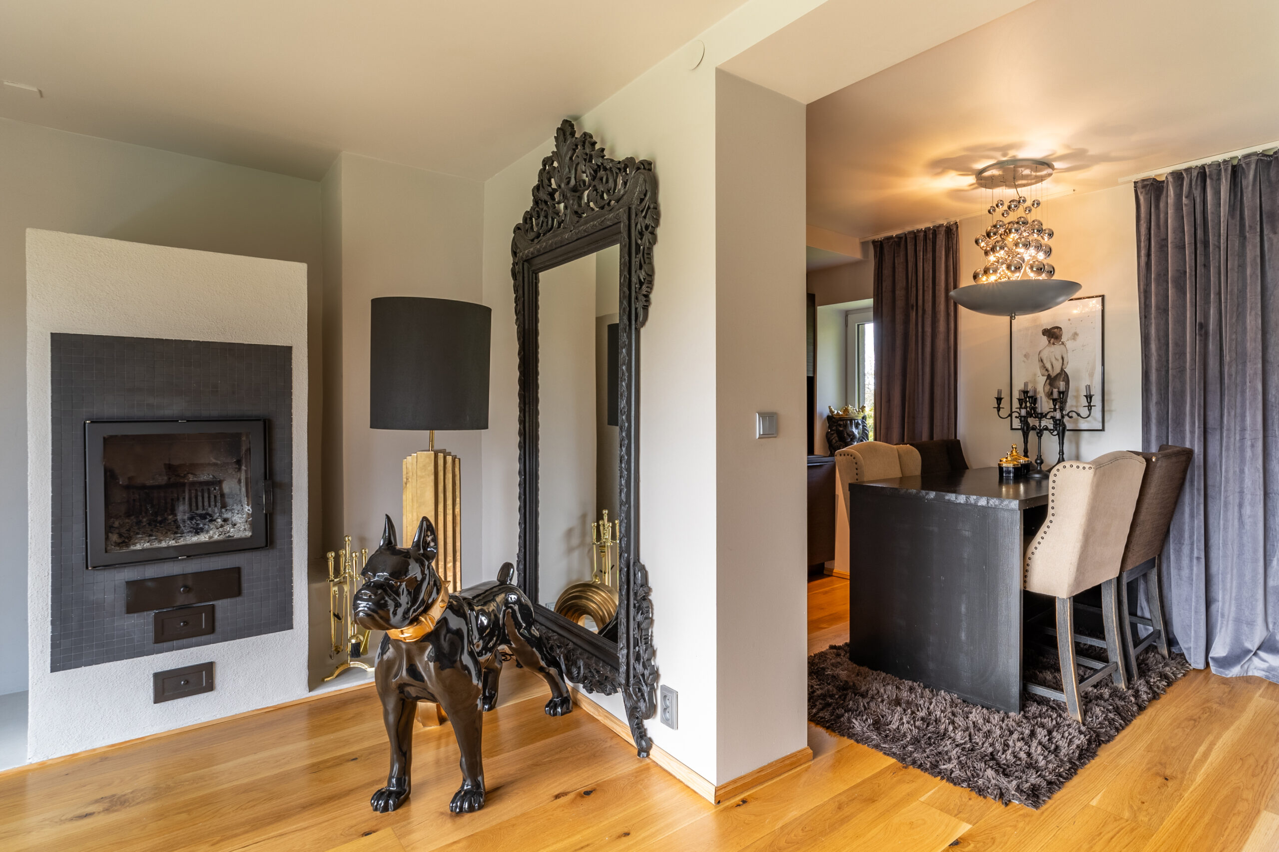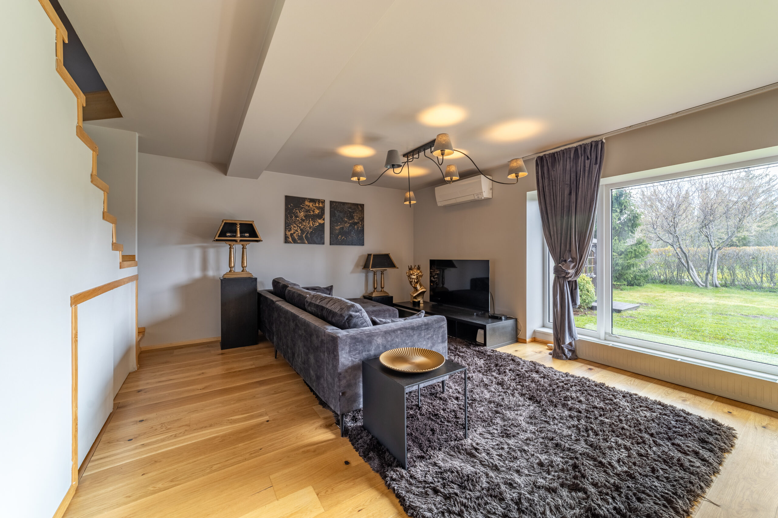 Modernne elutuba stiilse mööbli ja luksusliku viimistlusega